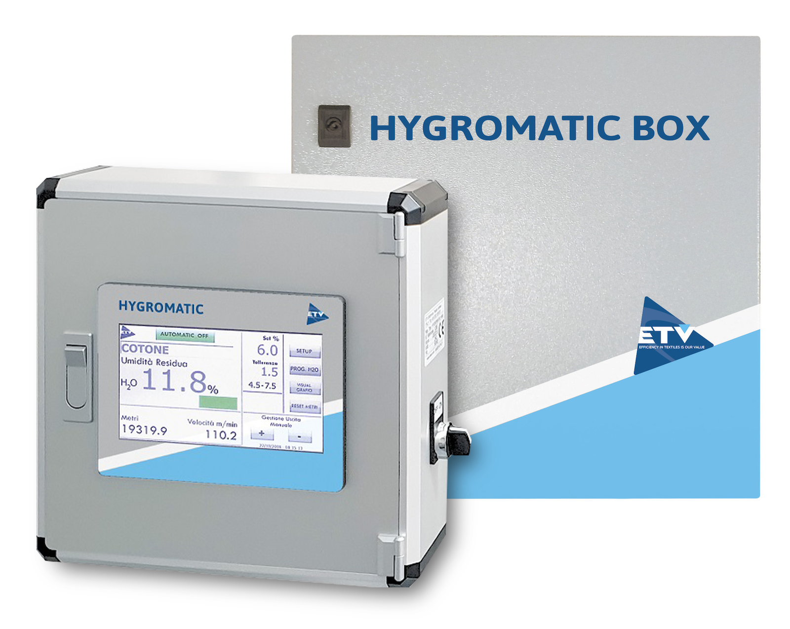 ETV Elettronica Tessile Varese started our business more than 50 years ago, developing the first inventive measuring instruments to assess residual moisture and to determine shrinkage speed in yarns and fabrics.