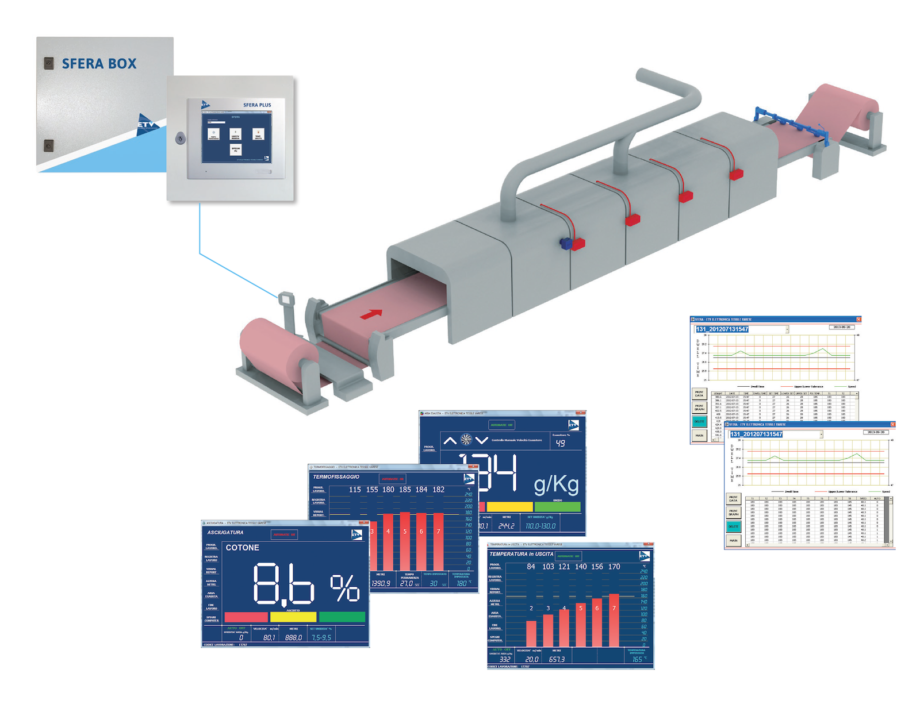 As a company, we deal with the design, implementation, testing and installation of our own equipment, as well as related sensors and the after-sales assistance. In particular devices for on-line measurement of the residual moisture of the fabric and yarn, and the temperature of the fabric and the exhaust air.