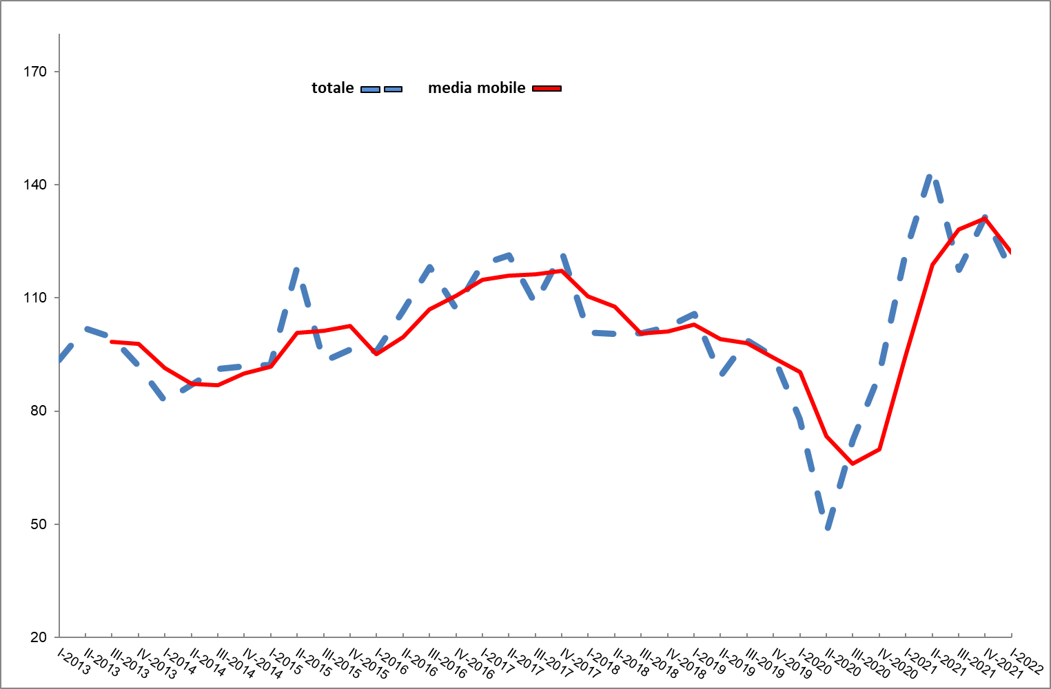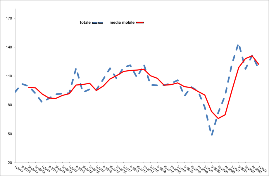 Gli ordini hanno registrato una flessione del 22% sul mercato interno, mentre all’estero il calo è stato più contenuto (-2%). In Italia il valore assoluto dell’indice si è fissato a 136 punti. Sui mercati esteri l’indice ha segnato un valore di 114,9 punti.