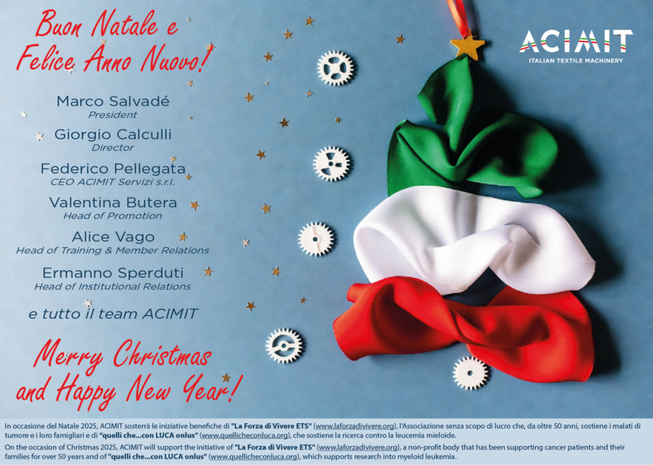 Vi informiamo che gli uffici di ACIMIT resteranno chiusi per festività dal 23 dicembre 2025 al 5 gennaio 2026. Il personale Acimit augura a tutte le Associate Buone Feste.